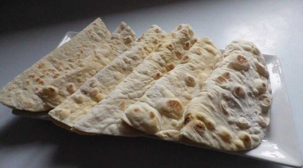 На плиту ставим антипригарную сковородку и сильно разогреваем ее. Когда сковорода накалилась, кладем на нее одну лепешку и обжариваем по полторы минуты с каждой стороны.