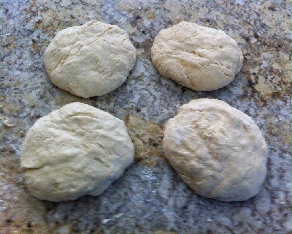 Из полученого теста формируем лепешки. У меня получилось 5 штук.
