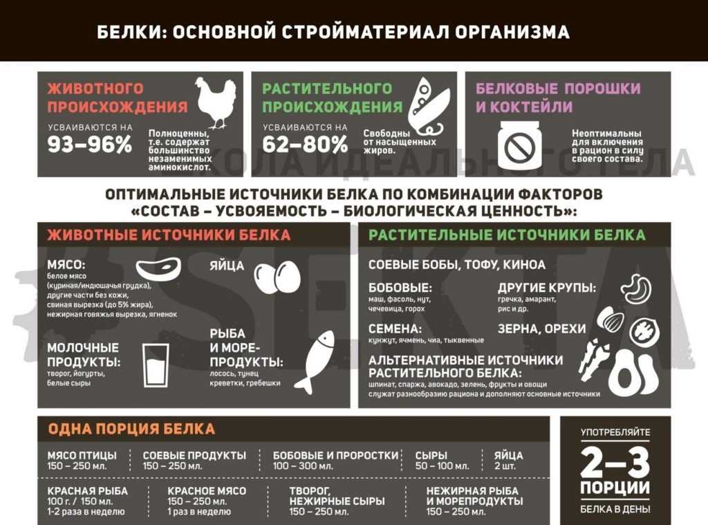 Считается, что протеины обязаны быть в ежедневном меню. Они бывают двух форм – протеины растительного происхождения, а также протеины белкового происхождения. Идеальное соотношение – 2 части животного белка к 3 частям растительного белка.