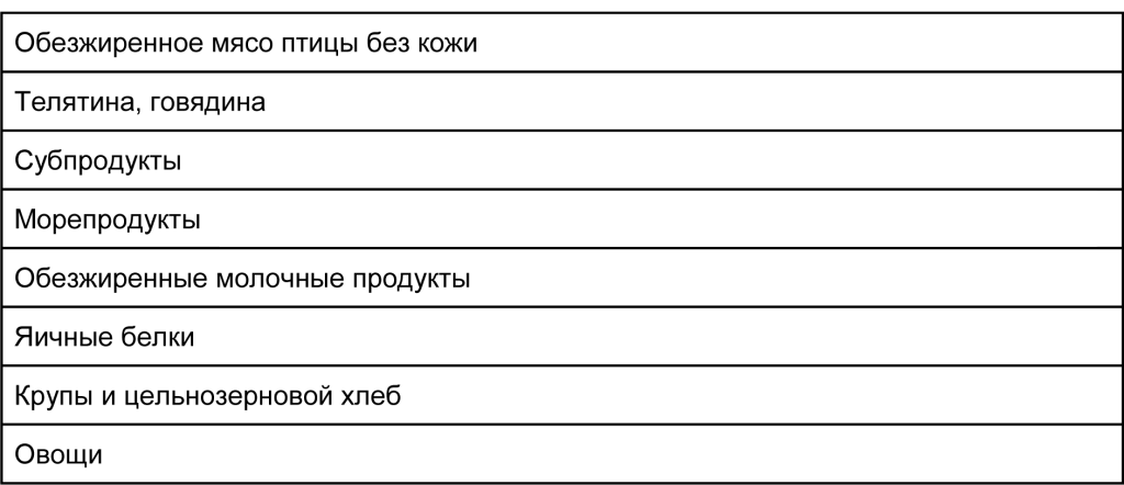 Из таблицы видно, что самая белковая пища — это мясо, рыба, яйца и молочные продукты, а также орехи и бобовые. Крупы, овощи и фрукты, в свою очередь, — это легкая белковая пища.
