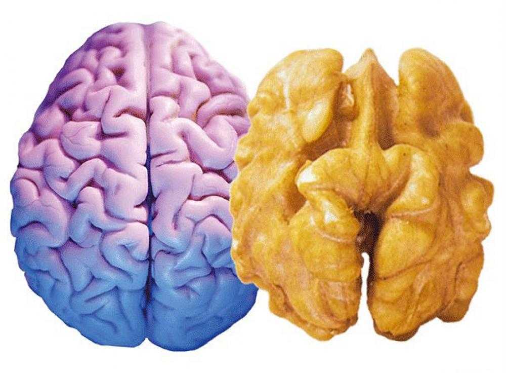 Продукт заключает в себе ценный лецитин, улучшающий мозговую деятельность и способность запоминания. Чтобы оздоровить организм в целом, получить суточную норму витамина С и ускорить тем самым мыслительные процессы, достаточно употребить около 5 грецких орехов. Включение в рацион орехов позволяет произвести профилактику преждевременного старения тканей мозга.