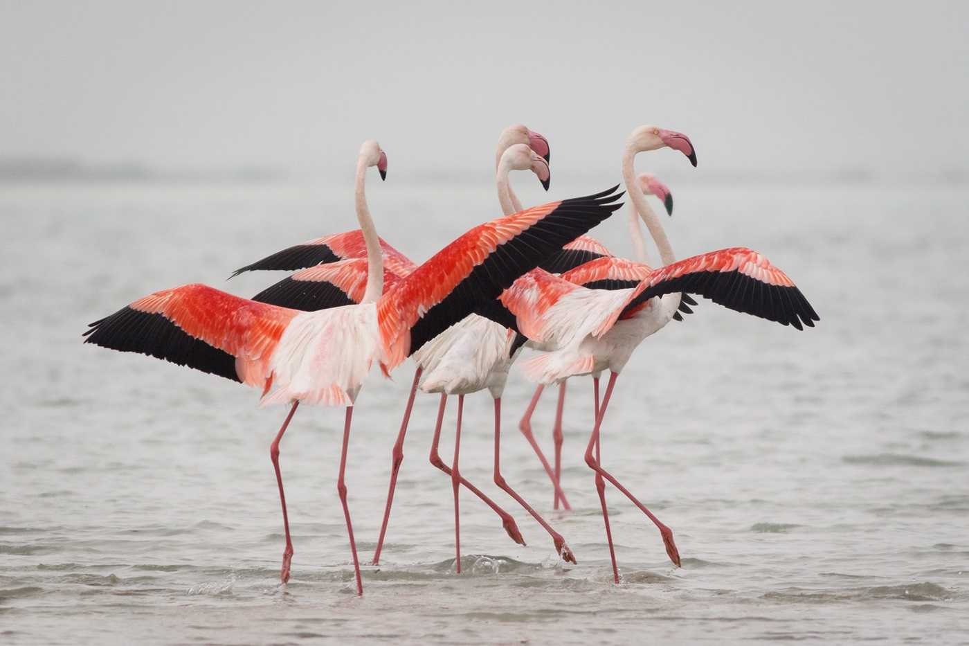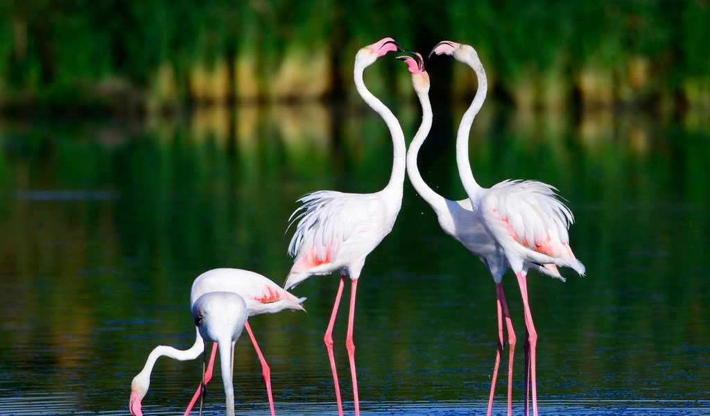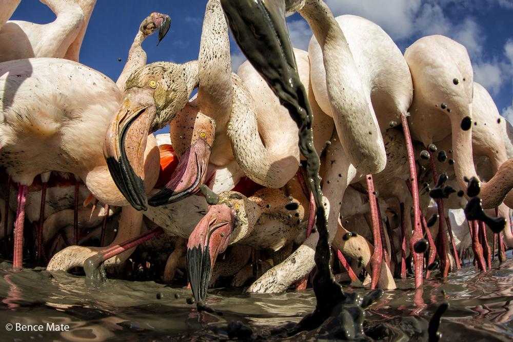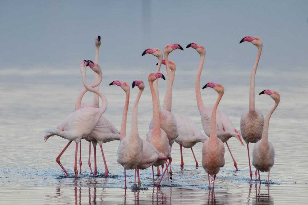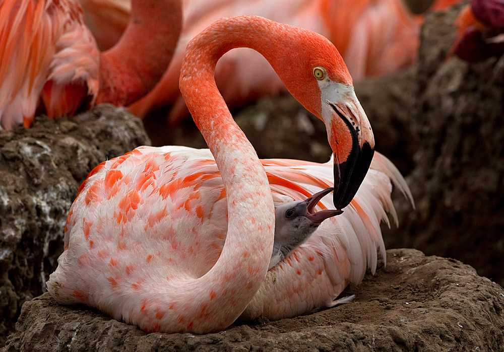 Половозрелыми розовые фламинго становятся на 4-5 году жизни. Гнездятся всегда большими колониями, иногда до 200 000 пар. Если сделать фото брачных танцев розовых фламинго, то сразу же бросается в глаза, что все движения исполняются стаей абсолютно синхронно.