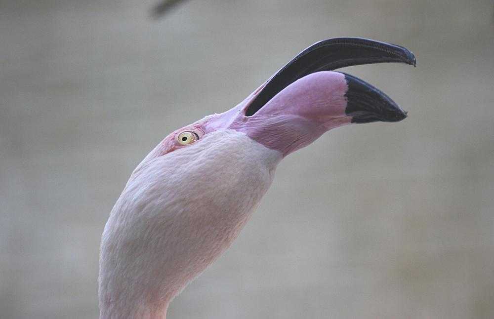 Розовый фламинго: фото клюва с нижнего ракурса.