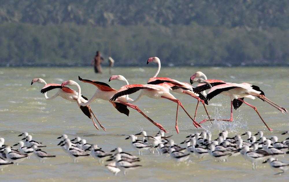 Розовые фламинго могут и сами стать добычей других пернатых хищников – соколов, коршунов и орланов, которые селятся недалеко от колоний фламинго. Так же эти птицы могут пострадать от лисиц, волков и шакалов.