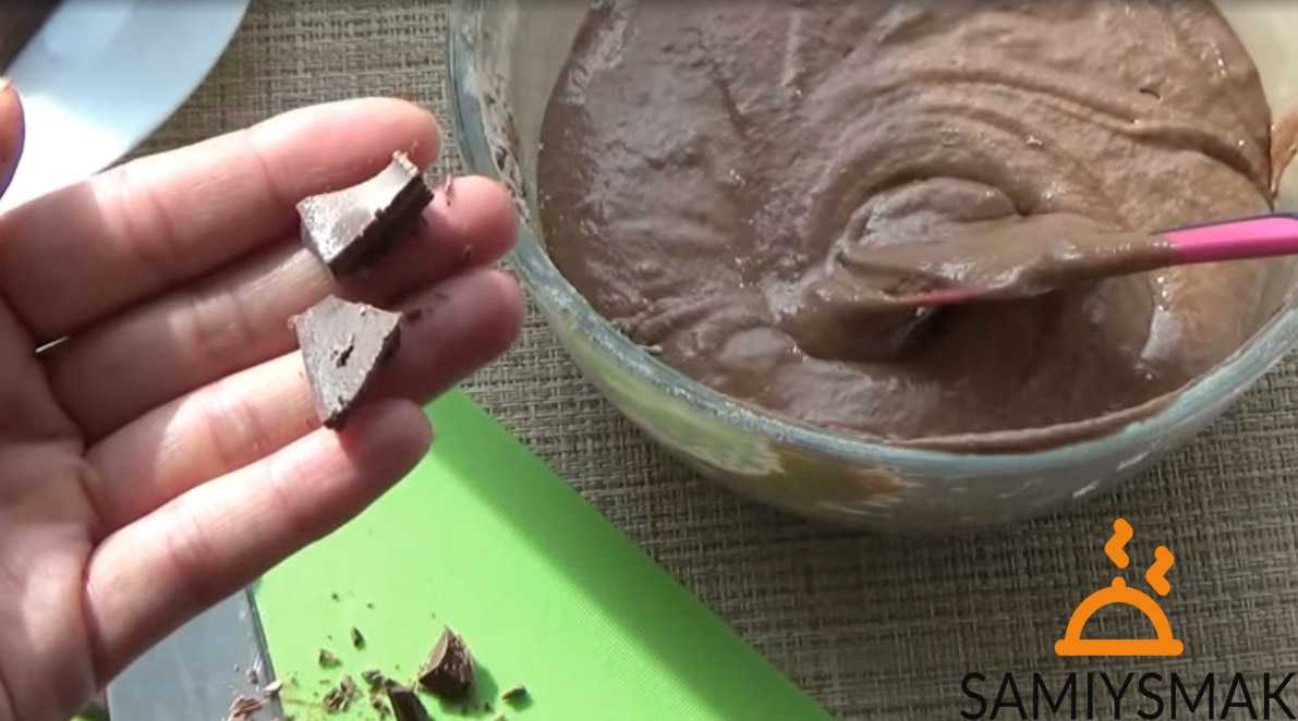 - Добавить к сухому замесу шоколадно-сливочный микс.