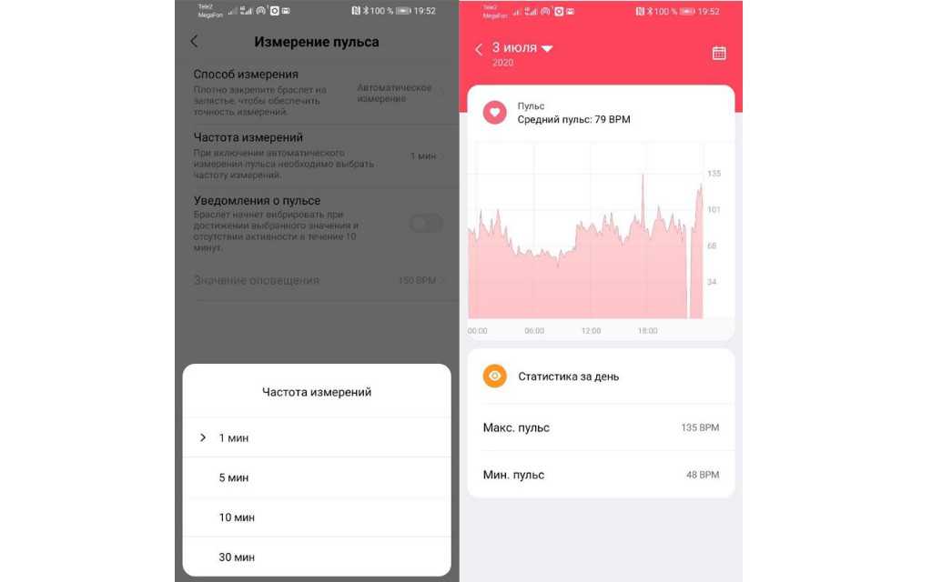 Mi Bandage выполняет мониторинг сна и пульса, выводит информацию в виде таблиц и графиков.
