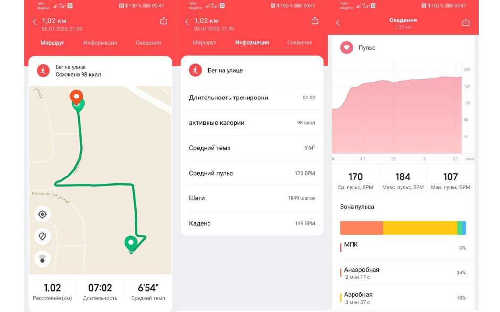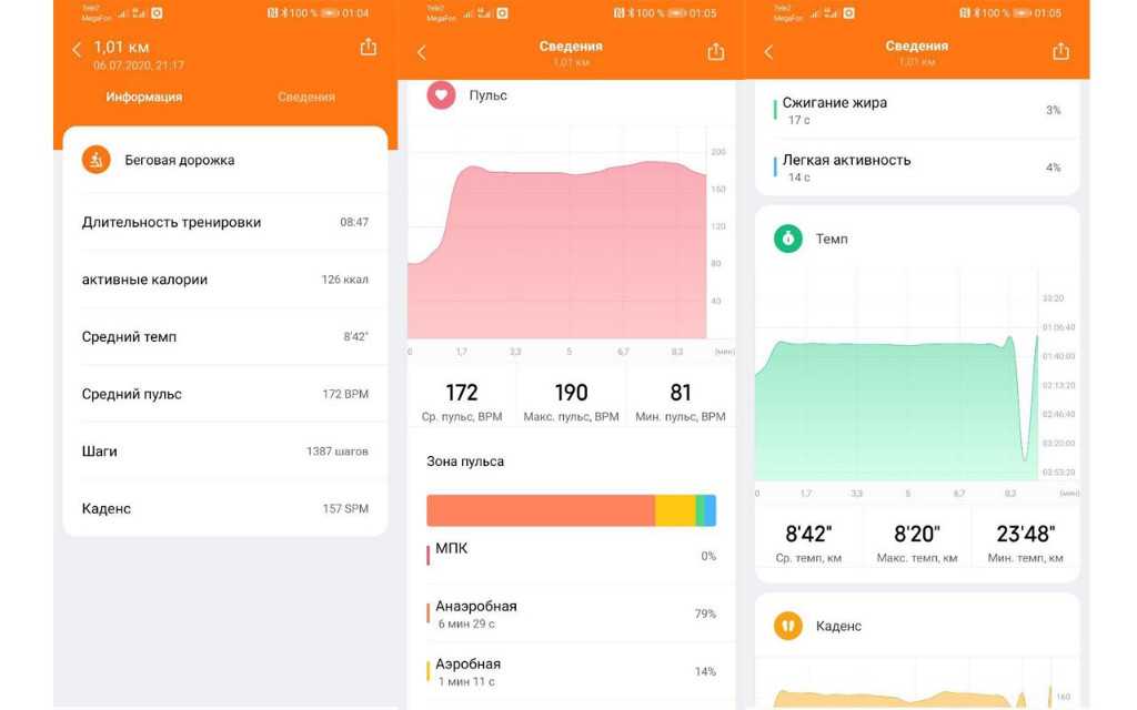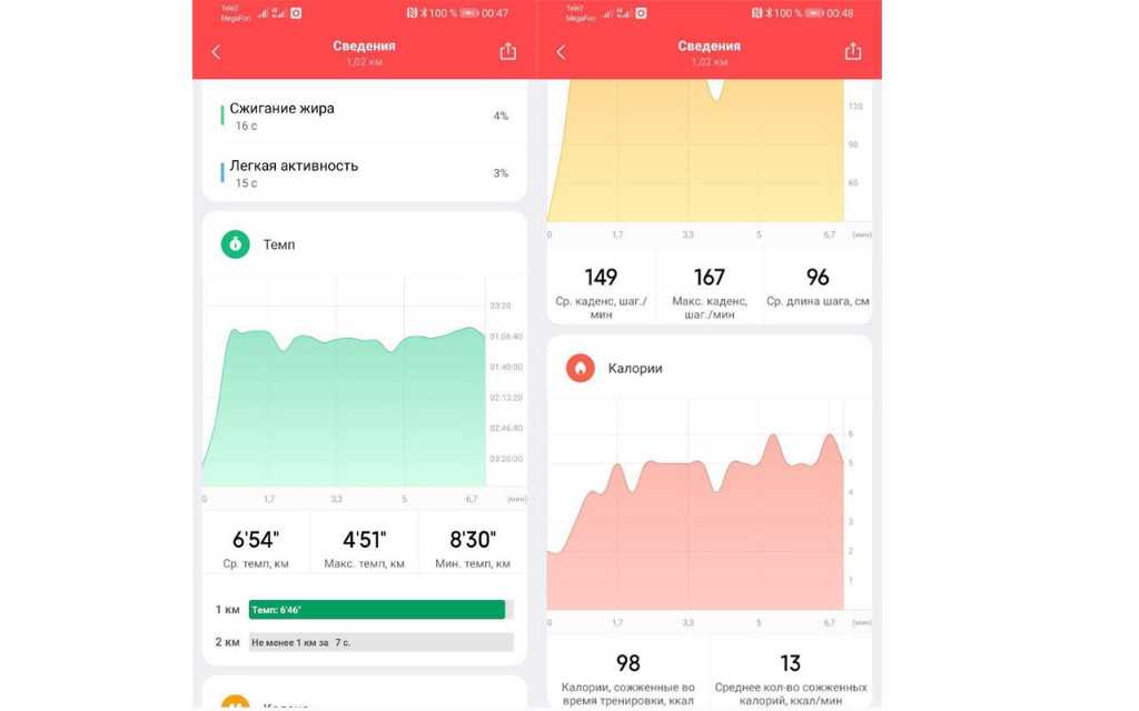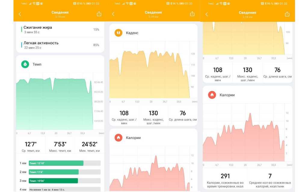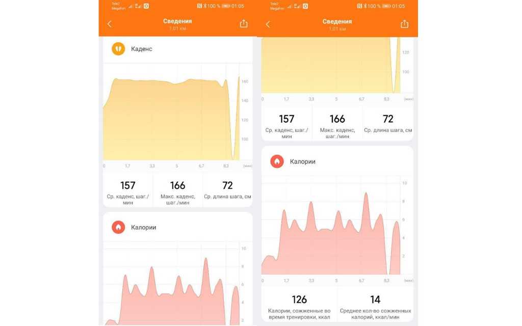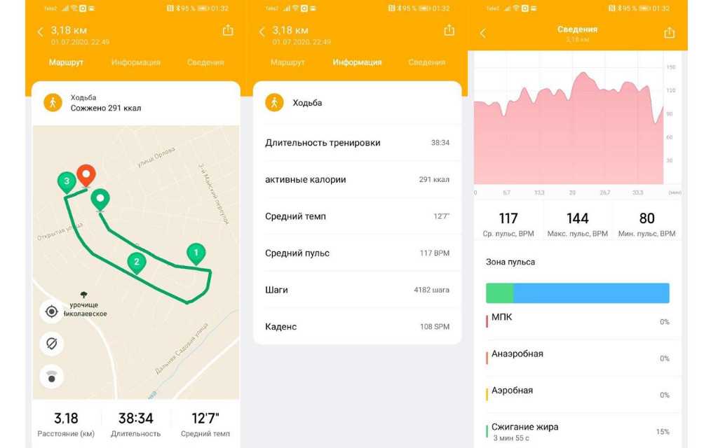 Программа собирает статистику тренировок и сопровождает её наглядной инфографикой. Всего поддерживается 11 режимов тренировки: бег, силовая ходьба, езда на велосипеде, беговая дорожка, плавание в бассейне, свободная активность, велотренажёр, орбитрек, скакалка, йога, гребной тренажёр.