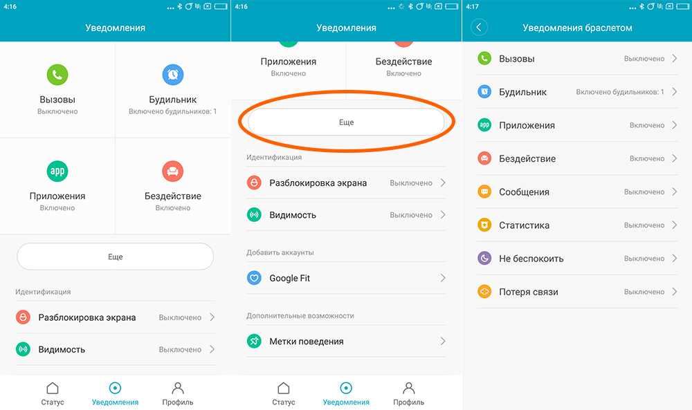 В Mi Fit можно выбрать циферблат, настроить уведомления от приложений, события, будильник, включить напоминая о необходимости подвигаться и многое другое.