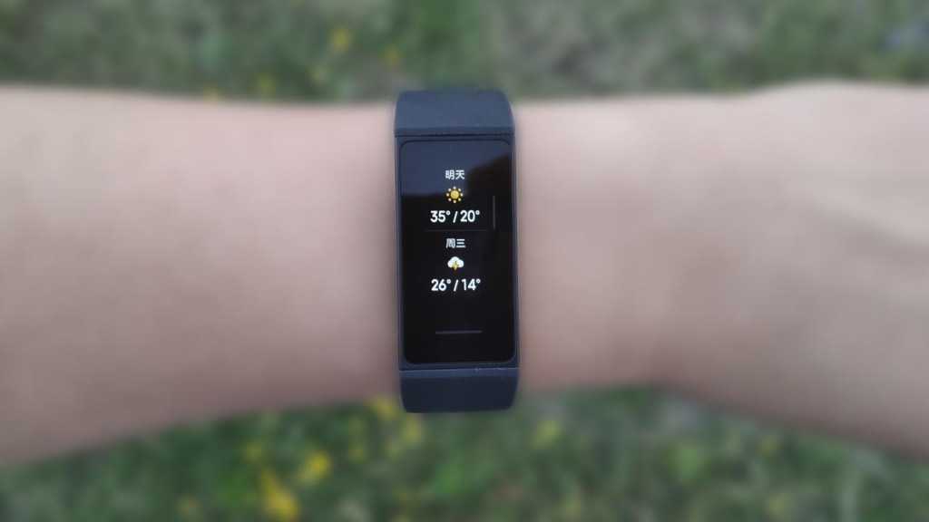 Пользователь может прямо на экране своего фитнес-браслет ознакомится с прогнозом погоды на неделю вперед. Xiaomi Mi Band 4C предоставляет следующие данные: облачность, осадки, температура днем и ночью. По подробности прогноза устройство ничем не уступает тому же Xiaomi Mi Band 4.