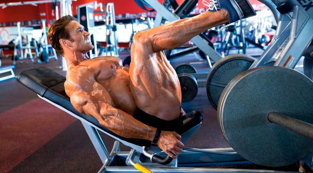 Жим ногами (два подхода в качестве разминки и три рабочих в суперсете) — 15-20 повторений.