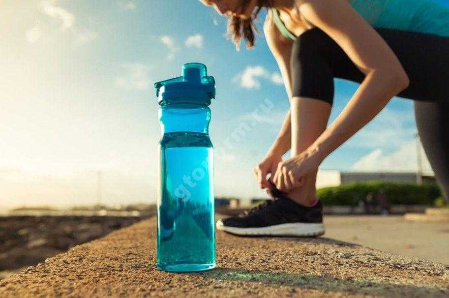 За два-три часа до занятий необходимо выпить две чашки воды или практически пол-литра. Непосредственно перед тренировкой выпить еще чашку – так можно быть уверенным, что организм увлажнен достаточно. С собой в зал можно и нужно брать спортивные бутылки для воды.