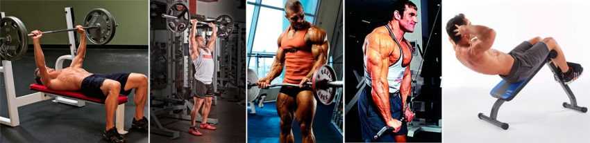 - упражнения с утяжелителями для тренировки бицепсов и трицепсов рук;