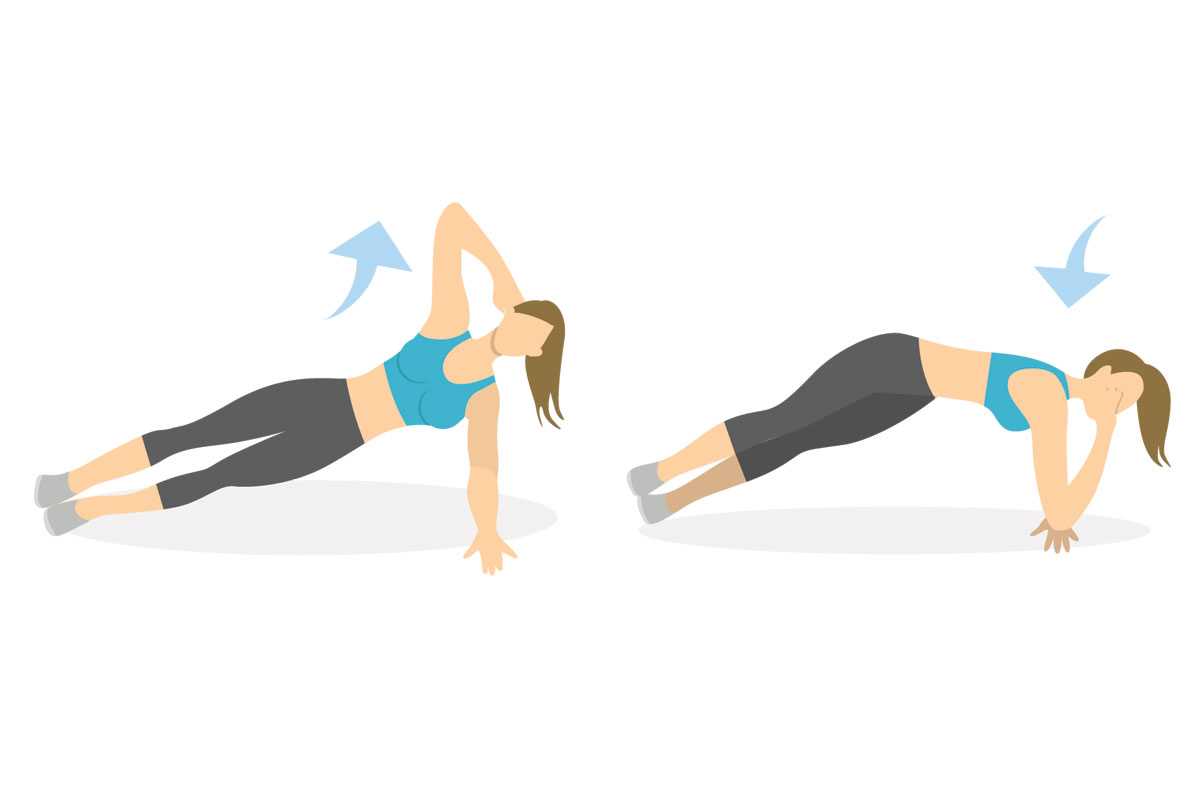 Усложненная вариация косых скручиваний, выполняемая из позиции боковой планки. Укрепляет пресс и верхнюю часть корпуса. |