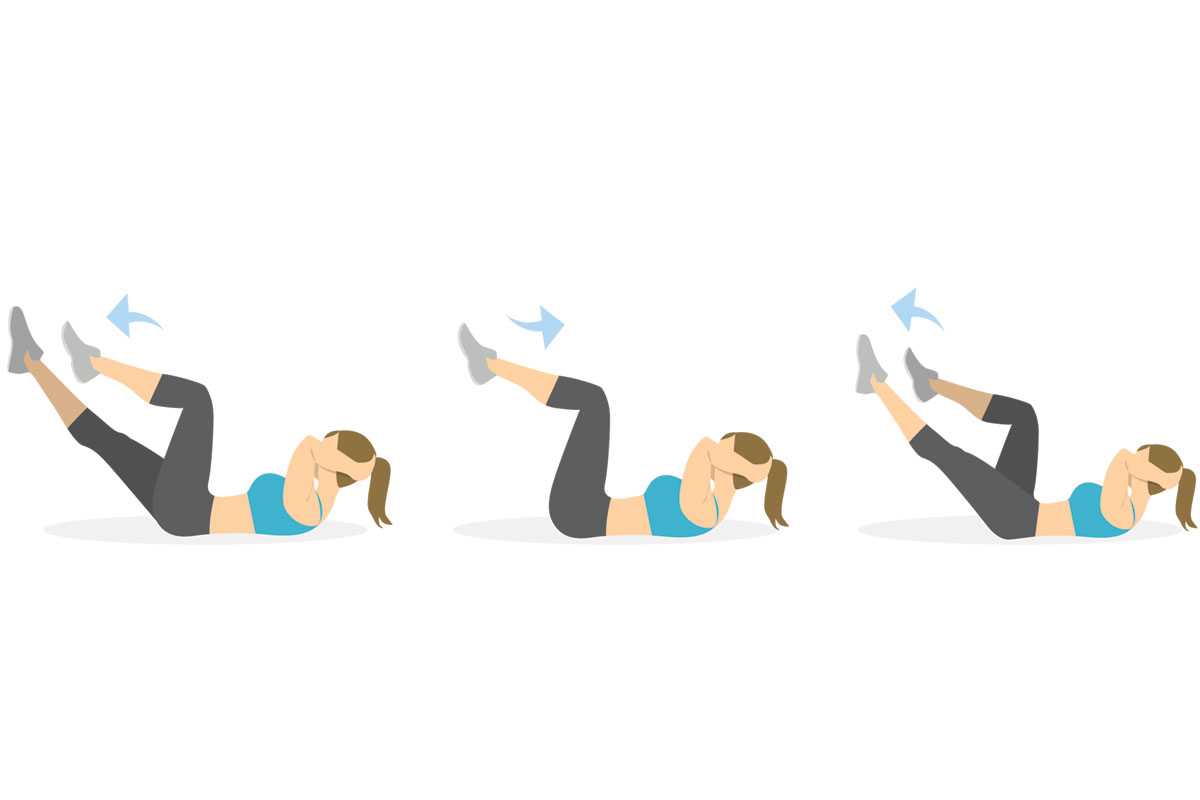 Упражнение “Велосипед”Совмещает классические скручивания с поочередным подтягиванием ног по направлению к груди. Развивает косые и внутренние мышцы живота. |