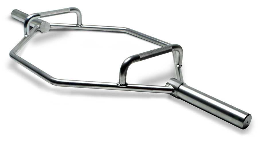 Спортивное шестиугольное снаряжение обладает теми же параметрами, что и олимпийский вид. Правда, разработано оно специально для становой тяги. Нагрузка при его использовании смещается на бедренные квадрицепсы. Удается избежать перенапряжения мышечных тканей в области позвоночника во время проведения тренировок.