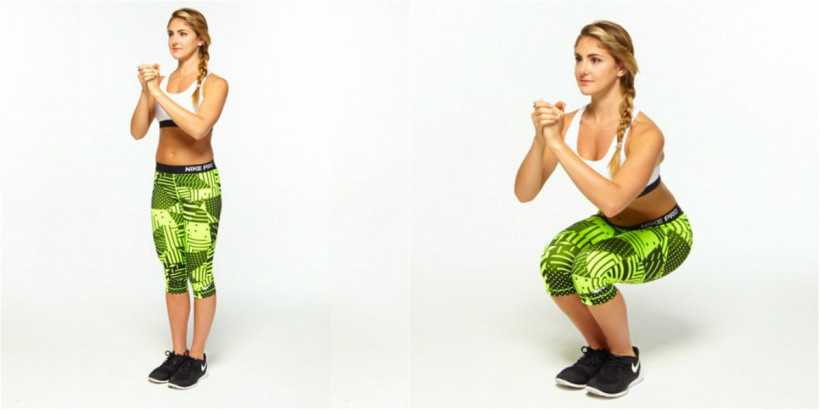 Обратите внимание, глубина приседа влияет на сложность упражнения. Если приседать ниже параллели, сильнее нагрузятся ягодицы и спина