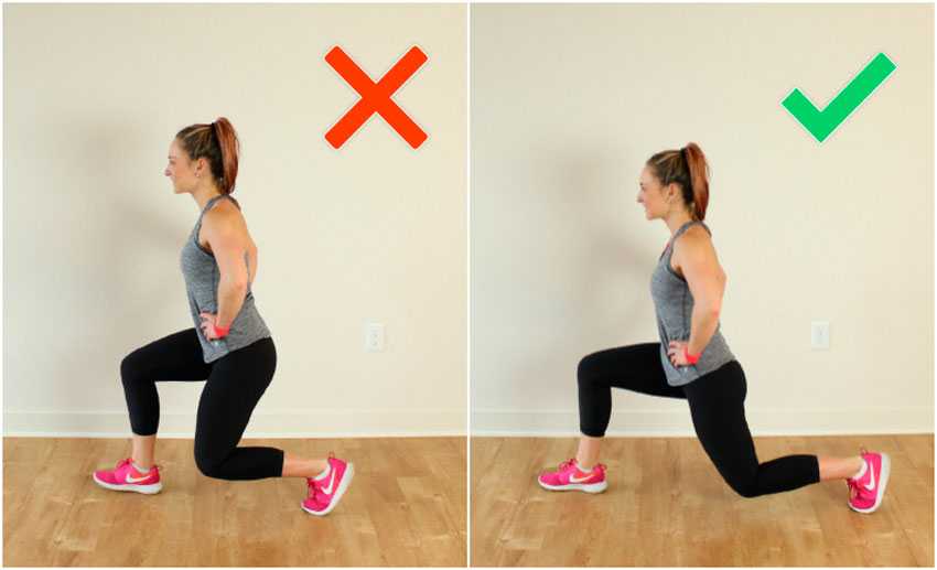 - глубина выпада должна быть минимум до параллели бедра полу;