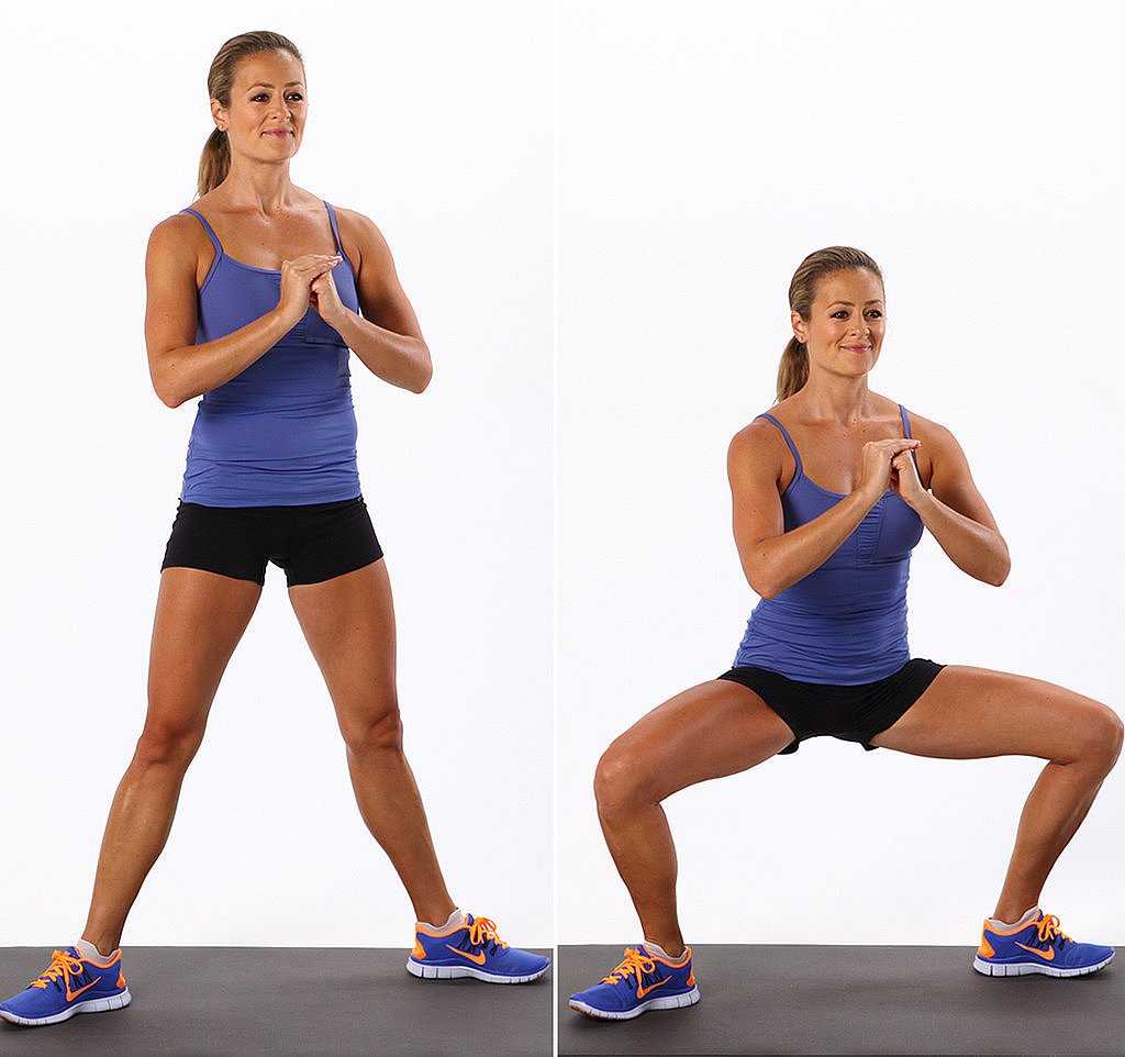 В данном случае количество повторов не так важно, большее значение имеет время, которые вы сможете удерживать тело в статическом приседе. После тренировки нужно обязательно еще раз размяться, растянуться