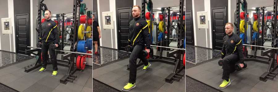 Многие атлеты, особенно начинающие, избегают это упражнения из-за сложности выполнения и дикого жжения во время последних повторений. А зря, ведь оно отлично задействует все мышечные массивы бедра, и, вдобавок тренирует вестибулярный аппарат. Выполнять можно как со штангой, так и с гантелями. В первом случае нужна помощь страховщика, а во втором – можно выполнять подход до отказа, сбросив гантели на пол.