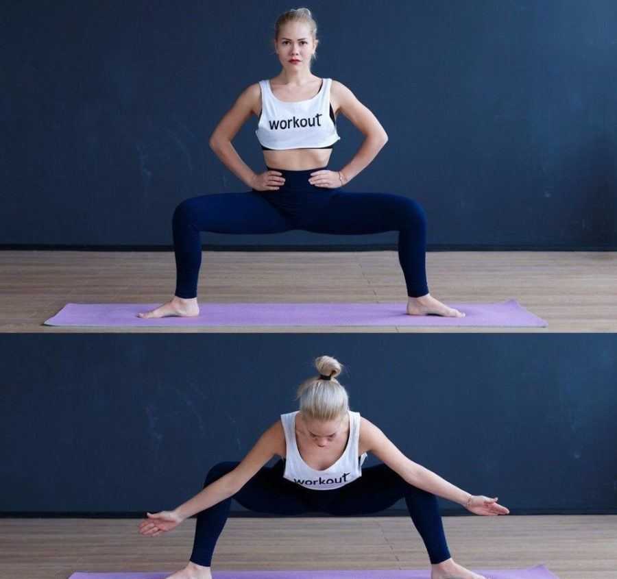 - Опустите таз вниз, чтобы получалась поза «сумо».