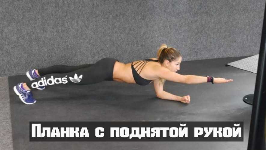 - Опять начните с классической планки, потом вытяните руку вперед, зафиксируйтесь на 10-15 секунд. Повторите для обеих рук.