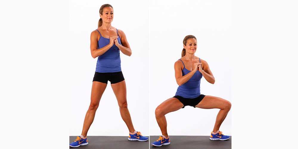 Пульсирующий вариант сумо-приседаний и плие-приседаний отлично подходит для «добивания» целевых мышц. Такой вариант приседаний можно выполнять даже без дополнительных отягощений – напряжение мышц вы получите колоссальное. Можно, например, выполнять 12 обычных повторений и затем 12 пульсирующих.