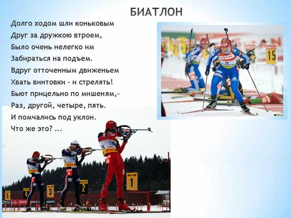 Биатлон-Это зимний олимпийский вид спорта, сочетающий лыжную гонку со стрельбой из винтовки