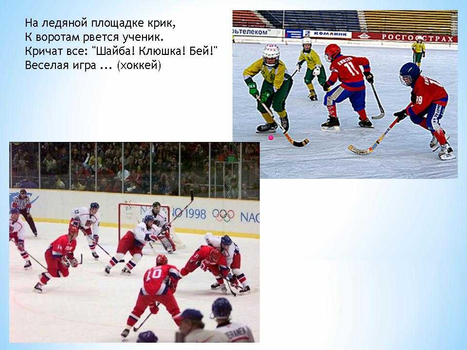 Самый популярный командный вид зимнего спорта – хоккей. Используя специальный инвентарь в виде защитного снаряжения, коньков, клюшки и шайбы, две команды пытаются забросить шайбу в ворота противника максимальное количество раз. Более того, на ледяной площадке разворачивается шорт-трек, участники которого выполняют скоростной бег на коньках по кругу на время, а также игра в кёрлинг, где две команды катают по льду тяжелые гранитные снаряды, стремясь уместить их в специальные мишени.