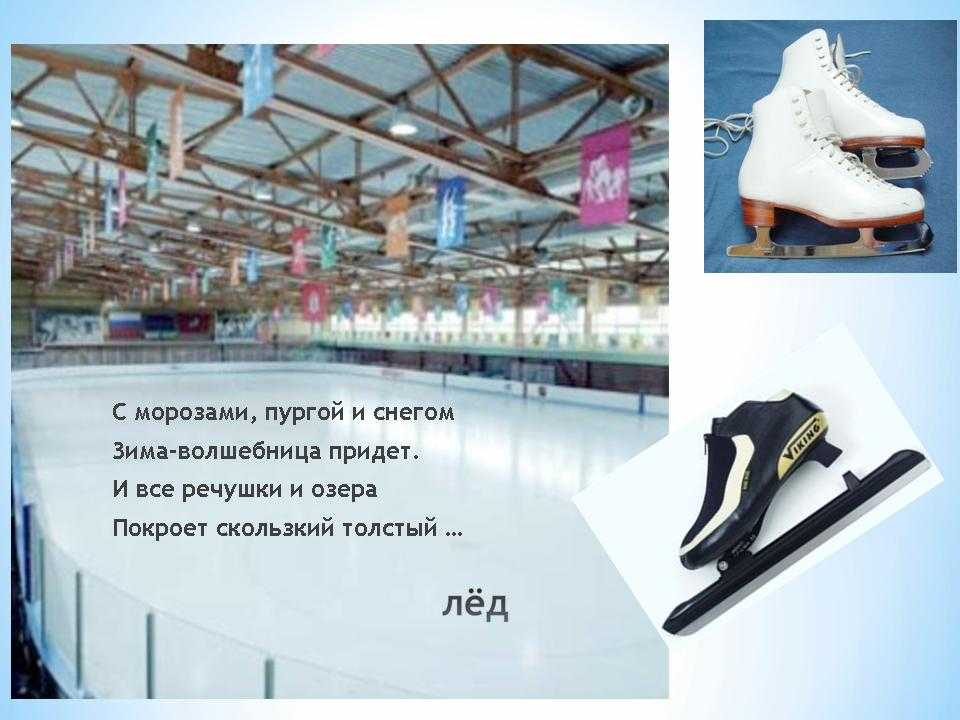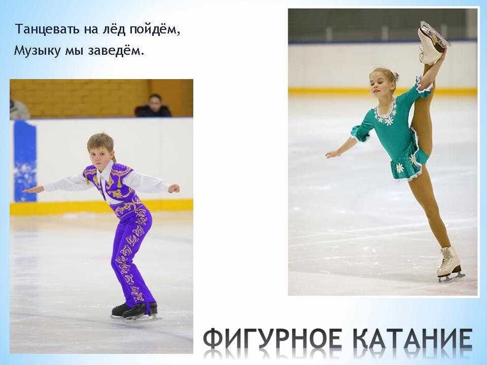 Фигурное катание — зимний вид спорта, в котором спортсмены перемещаются на коньках по льду с выполнением дополнительных элементов, под музыку.