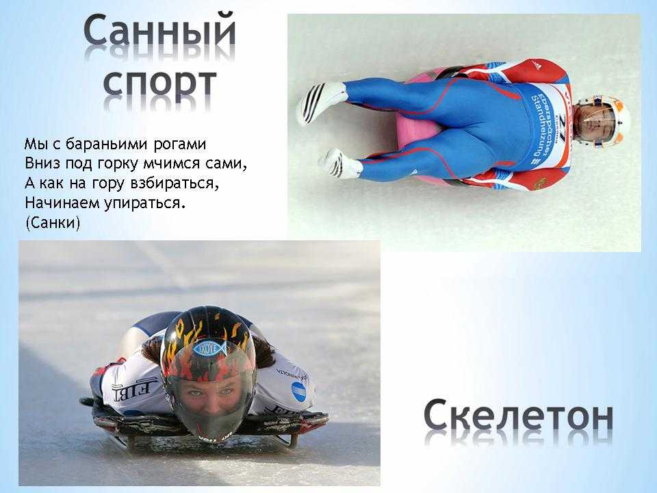 Скелетон считается олимпийским видом спорта, а суть игры очень проста — спуск с ледяной горы на двухполозных санках. Победитель этой игры определяется по сумме 2-4 заездов. Ознакомиться с этим видом спорта стоит обязательно, хотя бы для ориентировки в современных видах спорта.
