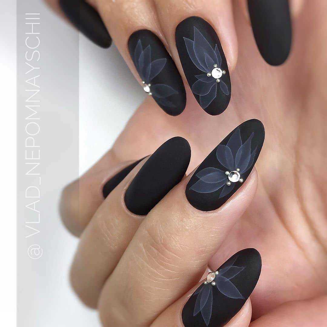 На прозрачной или матово-нюдовой основе отлично будут смотреться простые рисунки в черном цвете