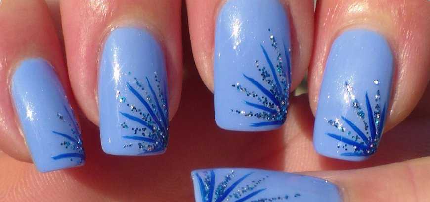 - Очень легко делаются и незамысловатые узоры. Здесь не нужно обладать никаким мастерством, при этом можно создать уникальные композиции. Рисунки вы можете наносить, как лаком, так и акриловыми красками. Отлично, если характер нанесенного рисунка, будет символизировать предстоящее событие (Новый год, день влюбленных, выпускной бал). Сделанный маникюр на праздник своими руками станет маленьким произведением искусства.