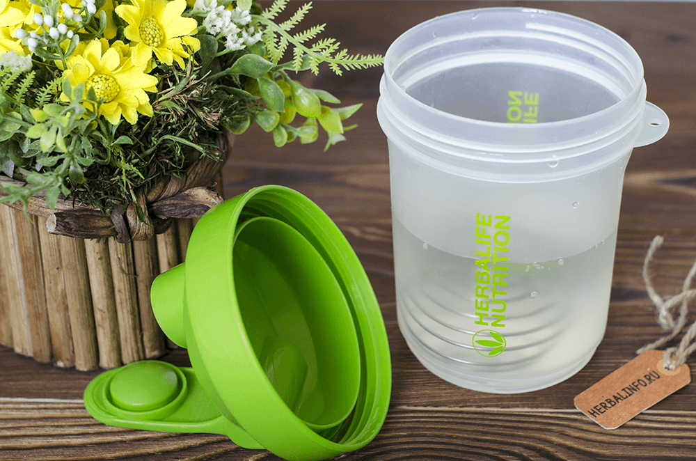 Наливаем воду 250-300 мл воды в блендер/шейкер. Я воспользуюсь своим любимцем – Супершейкером от Гербалайф с пружинкой внутри, он идеально разбивает комочки коктейля.
