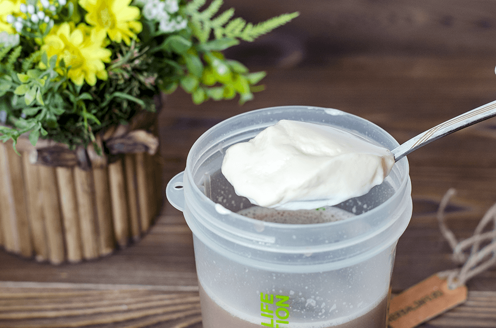 Я люблю пить коктейль с йогуртом. Добавим йогурта в наш коктейль.