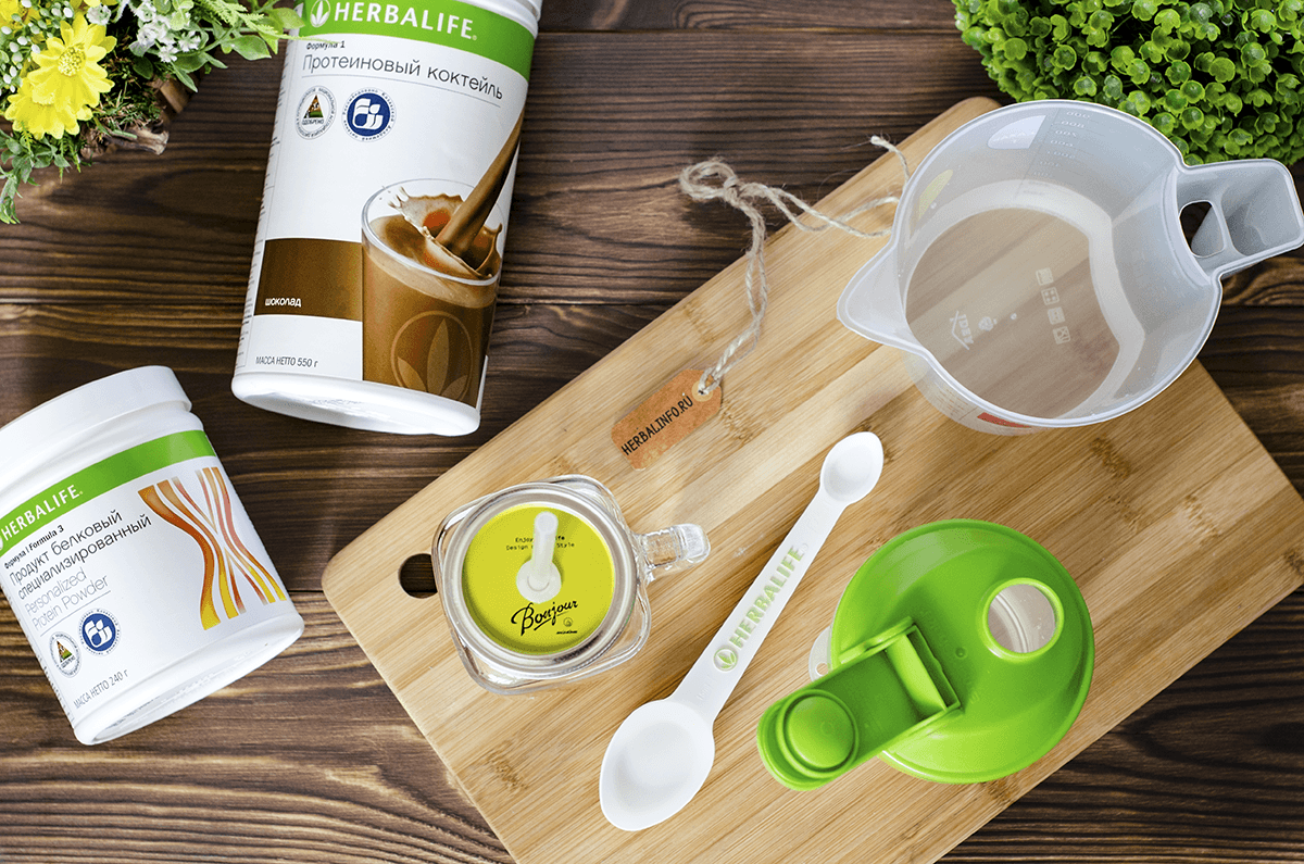 Коктейль и белок можно отмерять мерной ложкой Herbalife
