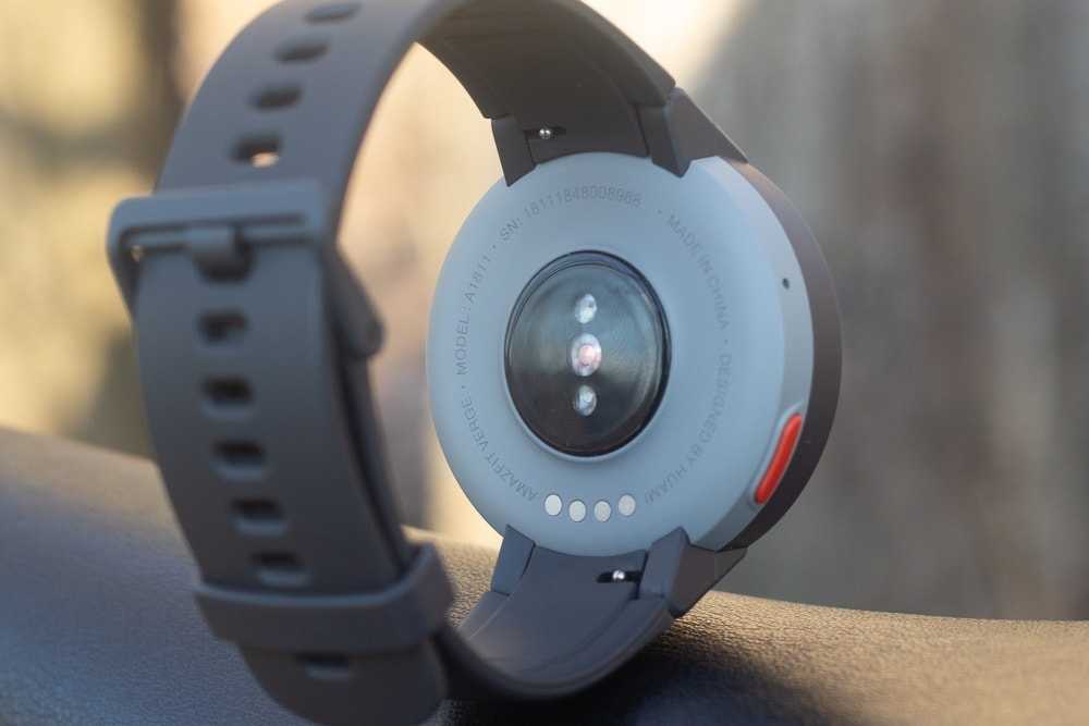 А вот это — датчик пульса в Amazfit Verge, который в одном из моих тестов, измеряя средний пульс, показал 195 ударов вместо 152 (что невероятно неточно):