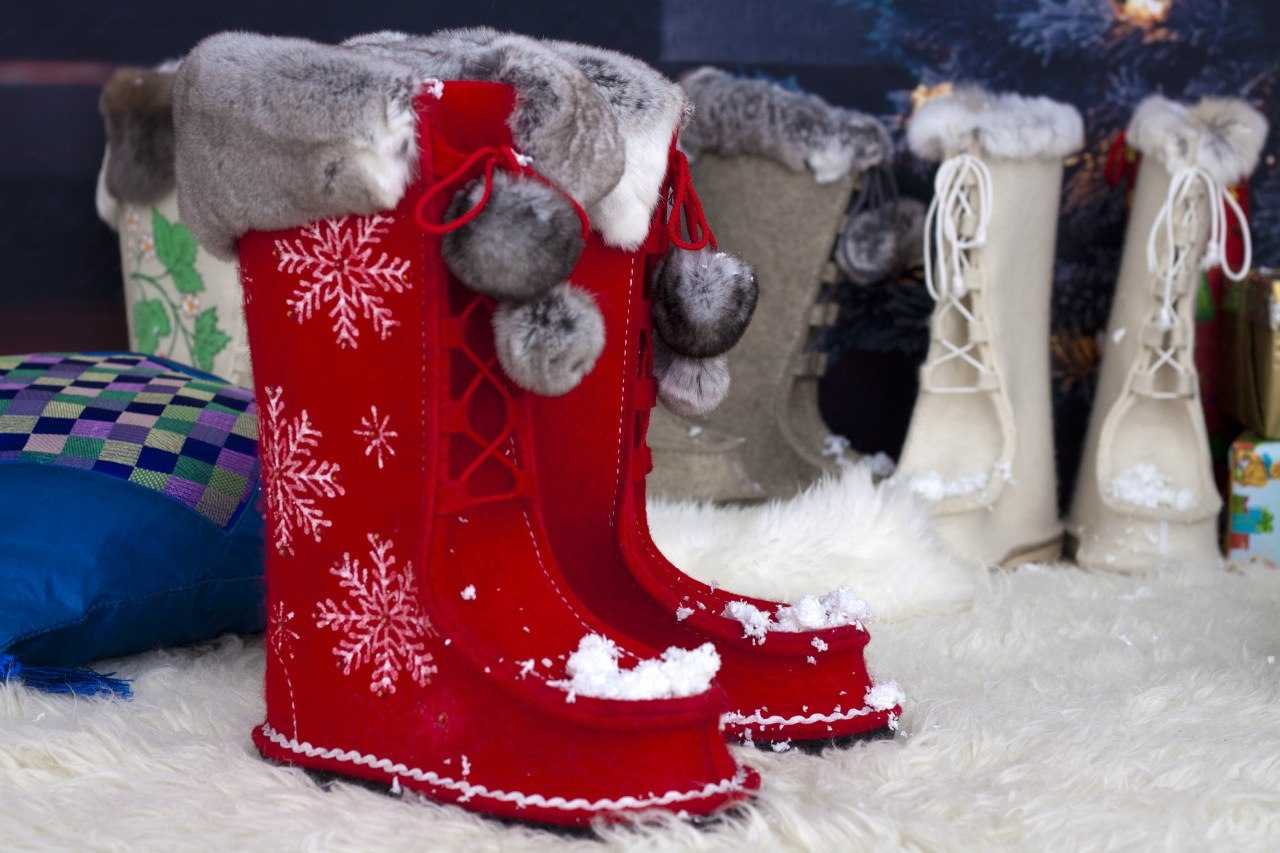 Модные войлочные сапоги из овечьей шерсти можно носить вместе с теплым объемным шарфом, вязаной шапкой и такими же варежками. Современная яркая шапка ушанка, ставшая хитом последних коллекций, прекрасно сочетается с красивой войлочной обувью.