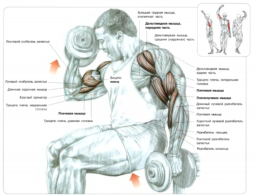 - жим гантелей сидя – движение для красивых крепких плеч и трицепса;