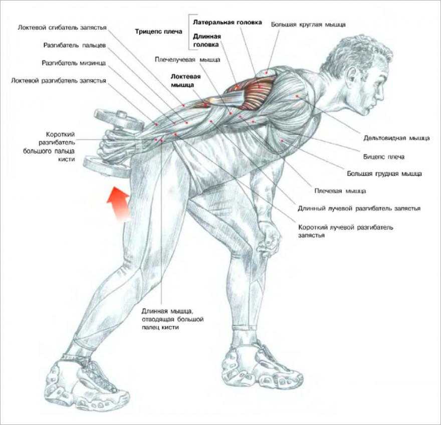- Чуть подсаживаемся и, поднимаясь, подпираем снаряд трапециевидной мышцей и задними дельтами;