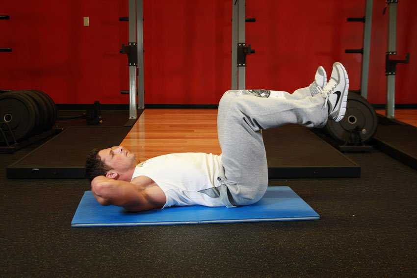 - Для его выполнения нужно лечь на пол лицом вверх. Плечи и поясницу прижать к полу, колени согнуть под углом 90 градусов. Стопы плотно прижать к полу, руки положить по бокам;