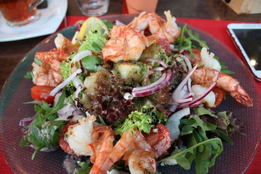 Питательный экзотический салат, полный полезными жирами, белками и витаминами, разнообразит меню диеты каменного века. Секрет вкуса заключается в специальной заправке и в маринаде для креветок.