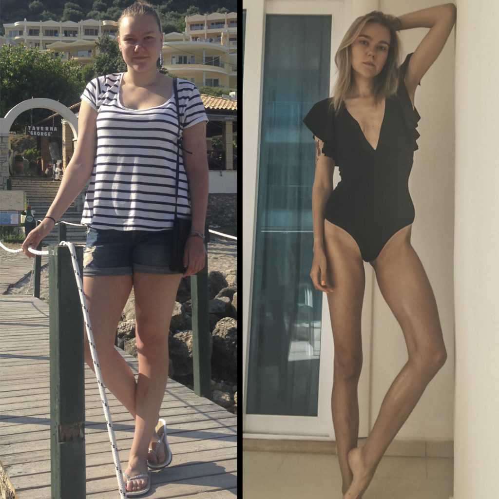 В 14 лет я поняла, что надо что-то менять. Начинала я с 10-минутных упражнений по утрам: приседания, скручивания… На фоне моей прежней жизни это дало какой-то результат. Но, поступив в училище и ощутив некую свободу от домашней еды, я стала есть много сладкого, и тут упражнения меня уже не спасли. Моя активная работа над питанием и тренировками началась, когда мне было 16 лет. На это повлияло только моё желание. И стоить отметить, в зале я не была ни разу за свою жизнь:)