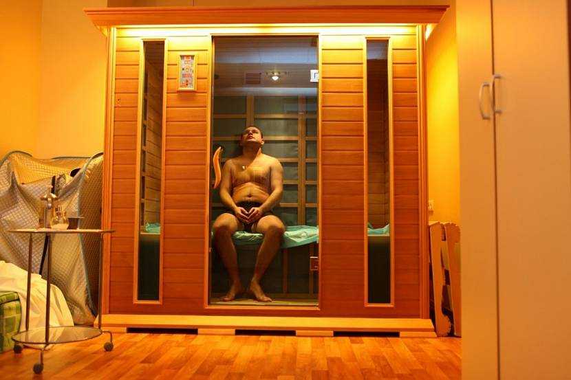 - Для максимального эффекта человек должен принять соответствующую позицию. Она должна соответствовать расположению нагревателей ИК-сауны. Например, при расположении последних на потолке – находиться в лежачем состоянии; при установке в стенах и под сидением – сидеть с прямой спиной.