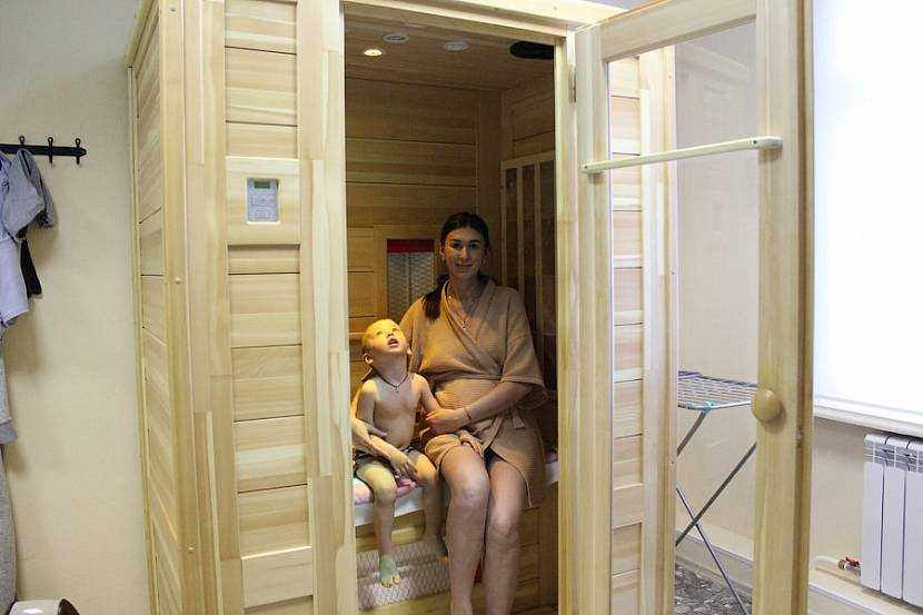 - Максимальный эффект сеанса прогревания в ИК-сауне достигается в течение 30-минутного посещения. Следует учитывать, что покидать помещение нельзя. Допускается открытие дверцы, что не сказывается на качестве процедур.