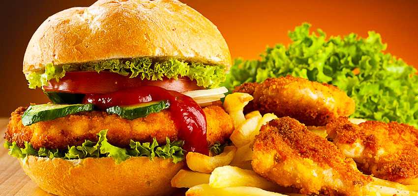 Полностью необходимо исключить еду быстрого питания, а также ограничить приём жирной (жареной) и углеводистой (хлебобулочной) пищи. Нет, полностью убирать жареное и углеводистое не стоит, но уменьшить их употребление необходимо. Лучше всего такое питание дозировать. Хлеб и подобное необходимо кушать только до обеда, после – нельзя.