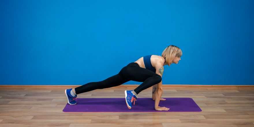 Исходное положение — планка на вытянутых руках. На вдохе медленно опуститесь вниз — руки на уровне пояса, локти под углом 45 градусов к корпусу. Пресс напряжен, позвоночник прямой. На выдохе резко оттолкнитесь руками вверх (это повысит кардио эффективность), затем задержитесь в верхней точке. Повторите 12-15 раз.