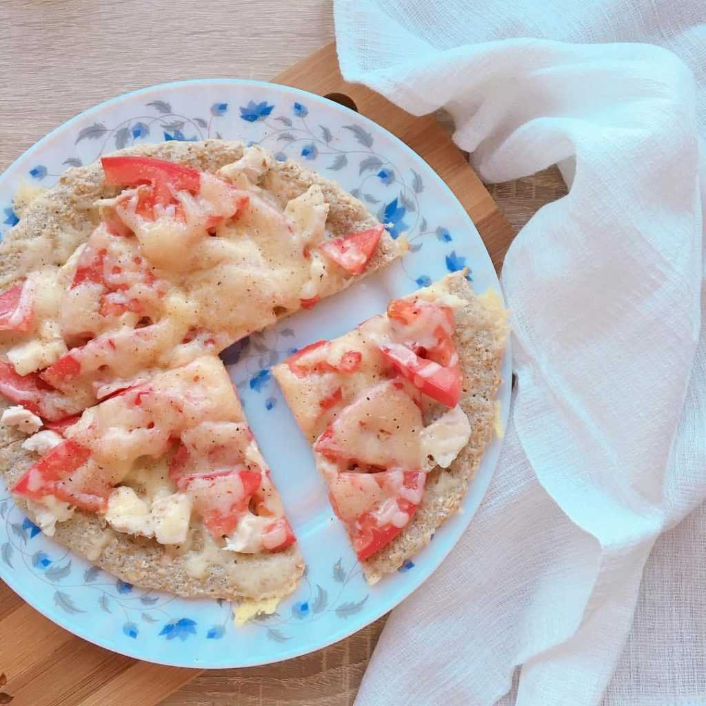 - Когда овсяноблин уже почти готов, но все еще на сковороде, положите сверху помидор, нарезанный кружочком.