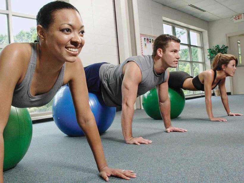 - Загрузка для ног: обратные выпады, махи ногами, стоя на четвереньках, глубокие приседания;