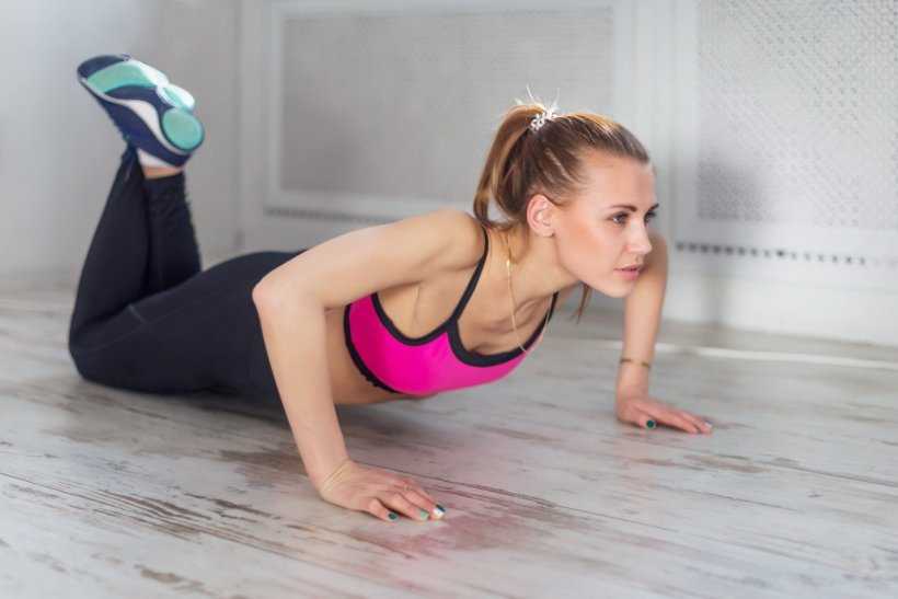- Загрузка для груди и спины: отжимания (обычные и с колен), выгибание и прогибание спины, стоя на четвереньках;