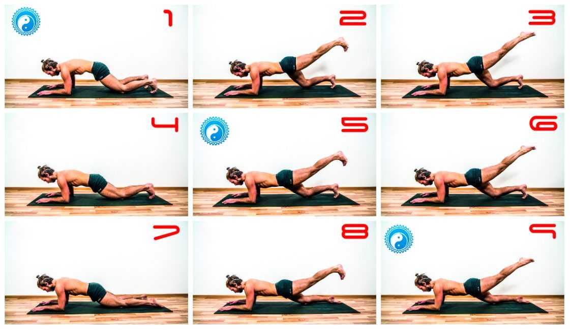 - Для усиления нагрузки ногу поднимают над полом, удерживая ее 15-30 секунд.